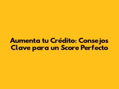 Aumenta Tu Crédito: Consejos Clave Para Un Score Perfecto