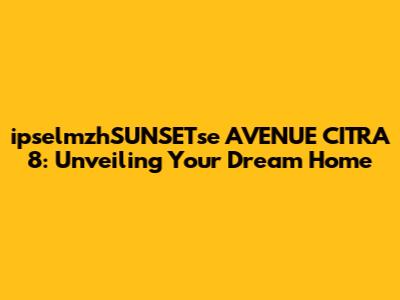 Hey there, future homeowner! Are you on the hunt for the perfect place to call your own? Well, look no further, because ipselmzhSUNSETse AVENUE CITRA 8 might just be the hidden gem you've been searching for. This isn't just a house; it's a lifestyle, a community, and a chance to build your future in a space designed for comfort, convenience, and connection. Let's dive deep into what makes ipselmzhSUNSETse AVENUE CITRA 8 so special and why it could be the ideal spot for you and your loved ones. We're talking about location, amenities, the feel of the neighborhood – everything you need to make an informed decision and fall head over heels for your potential new home.